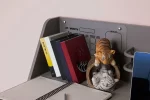 Chambre d’enfant qui allie chaleur ludique et fonctionnalité moderne. Les couleurs terreuses du lit renforcent l’atmosphère naturelle et créent une atmosphère chaleureuse dans la pièce. La tête de lit en tissu est dotée d’une base pour l’éclairage offrant confort et commodité tout en lisant et en se relaxant. Pour gagner encore plus de place, le lit est doté de tiroirs dans sa base, offrant un moyen intelligent d’organiser les jouets et les objets personnels. Le bureau moderne allie style et fonctionnalité avec des étagères offrant un espace de rangement pour les livres, les œuvres d’art et les objets personnels, tandis que la boîte à gants est dotée d’un mécanisme d’arrêt de sécurité.