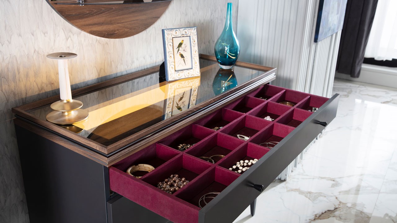 MISTY COMMODE+MIRROIR ANTHRACITE WALNUT